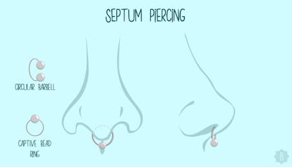 Adornate il vostro piercing al setto con bilancieri circolari, anelli captive bead e, se siete dediti, gauges.