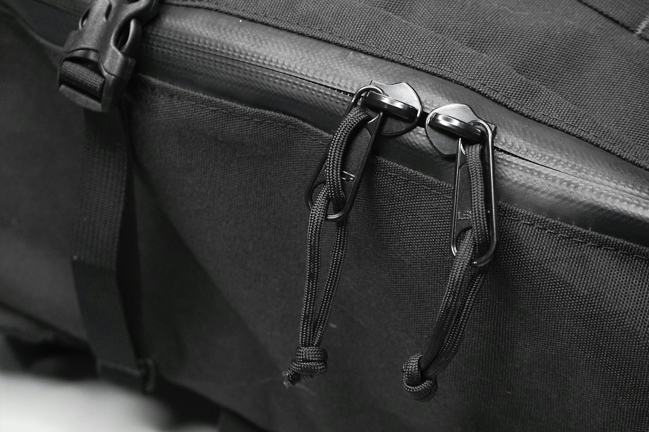 Vai encontrar zíperes Lenzip ao longo do saco -#10 zíperes Lenzip resistentes à água, para ser exacto. Nós apreciamos a proteção adicional que estes zíperes oferecem para o nosso equipamento. Eles têm até mesmo puxadores fáceis de agarrar e garagens embutidas para enfiar os zíperes para garantir que a sua bolsa esteja selada e segura. Somos sempre um pouco céticos quando não é YKK, mas estes zíperes são robustos e estão à altura da tarefa. E todos eles têm funcionado bem durante os testes, por isso não há reclamações aqui.