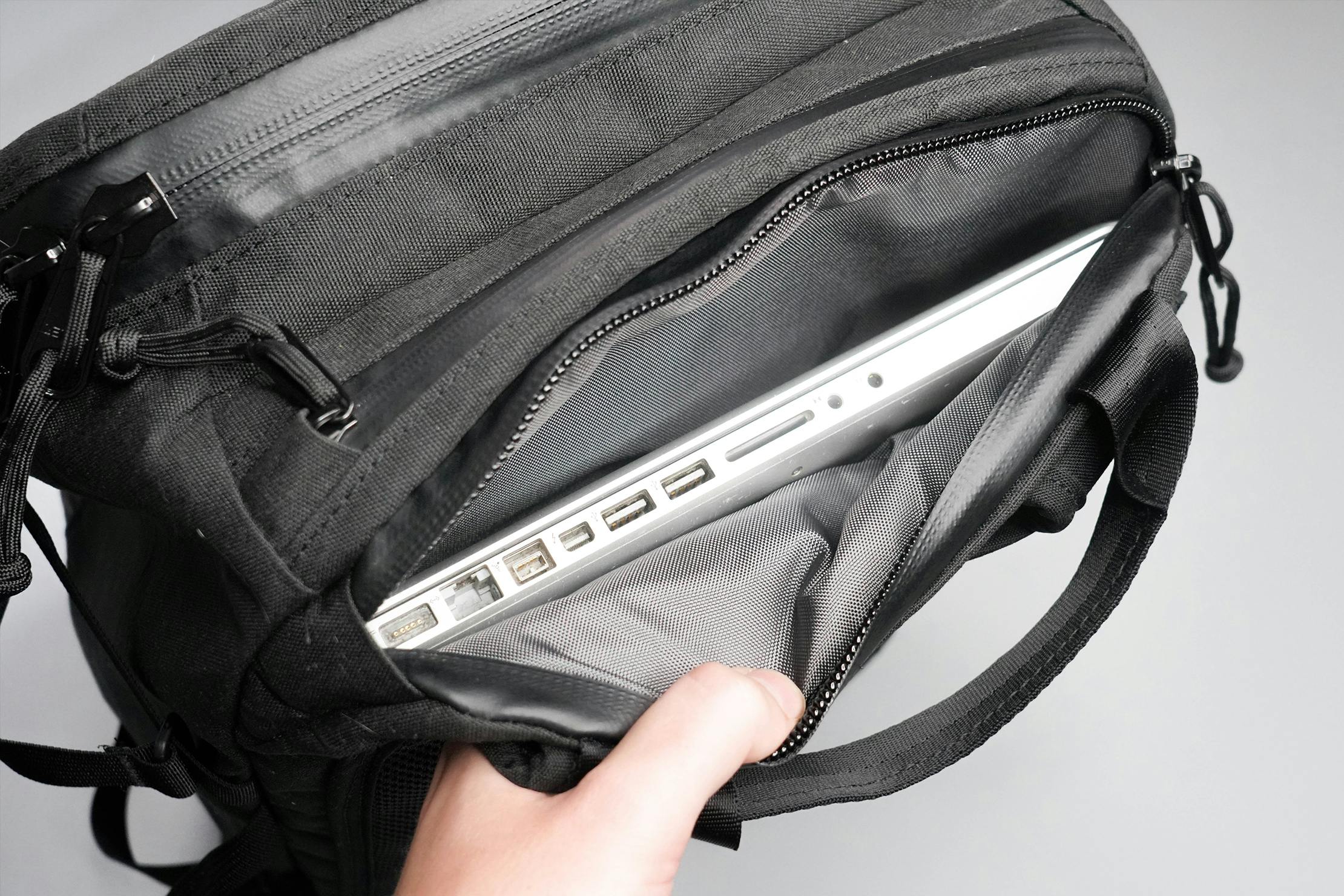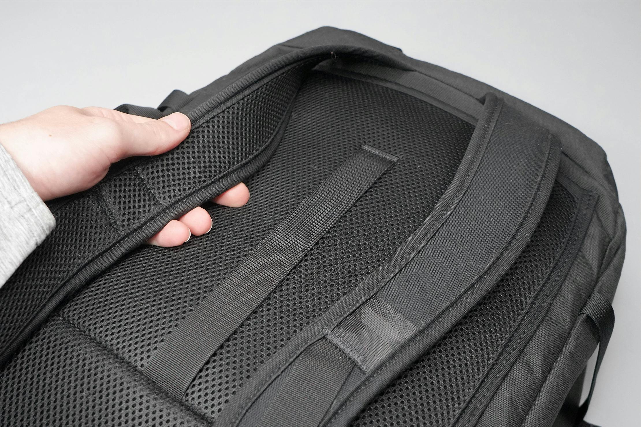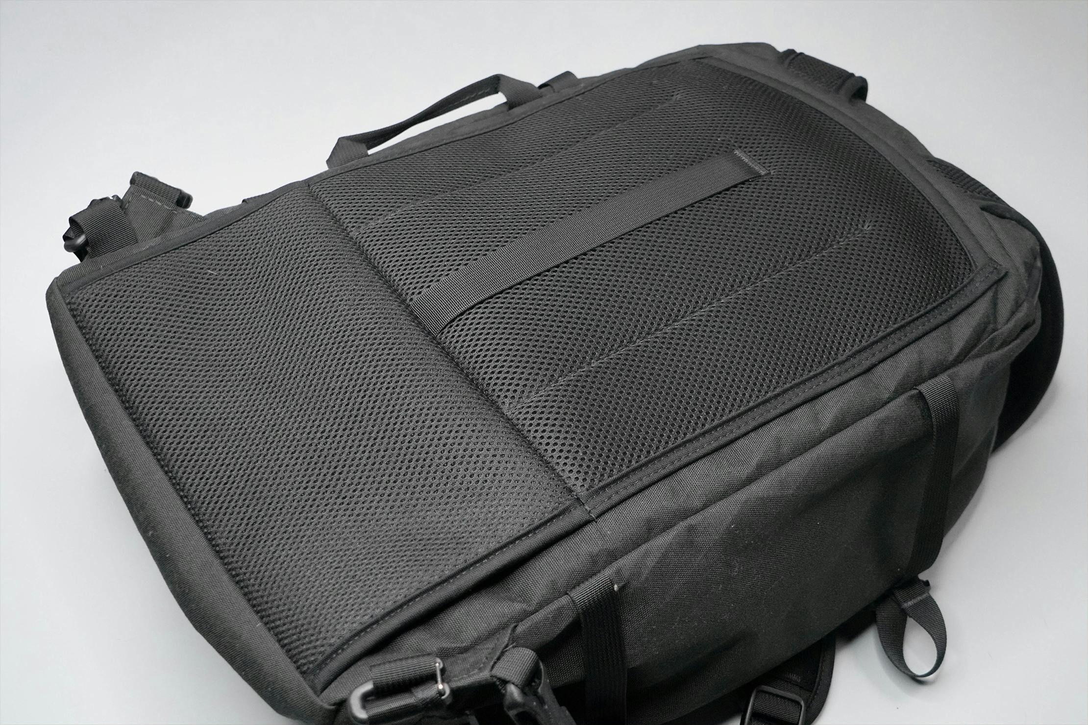 Agora, esta falta de estrutura é conveniente para se/quando você estiver empacotando a mala para uso posterior, já que você pode raspar ou dobrar esta coisa bem plana. Mas quando se tem a mochila nas costas, parece um pouco frouxa, especialmente se a mochila não estiver totalmente arrumada. Se você está procurando uma maneira de remediar isso, descobrimos que manter um laptop no compartimento traseiro ajuda a dar alguma estrutura, e ainda mais se o laptop está em uma caixa protetora, mas como explicamos na revisão do Matador SEG42 Travel Pack, é meio estranho ter seu laptop agindo como um frame sheet (um frame sheet muito caro).