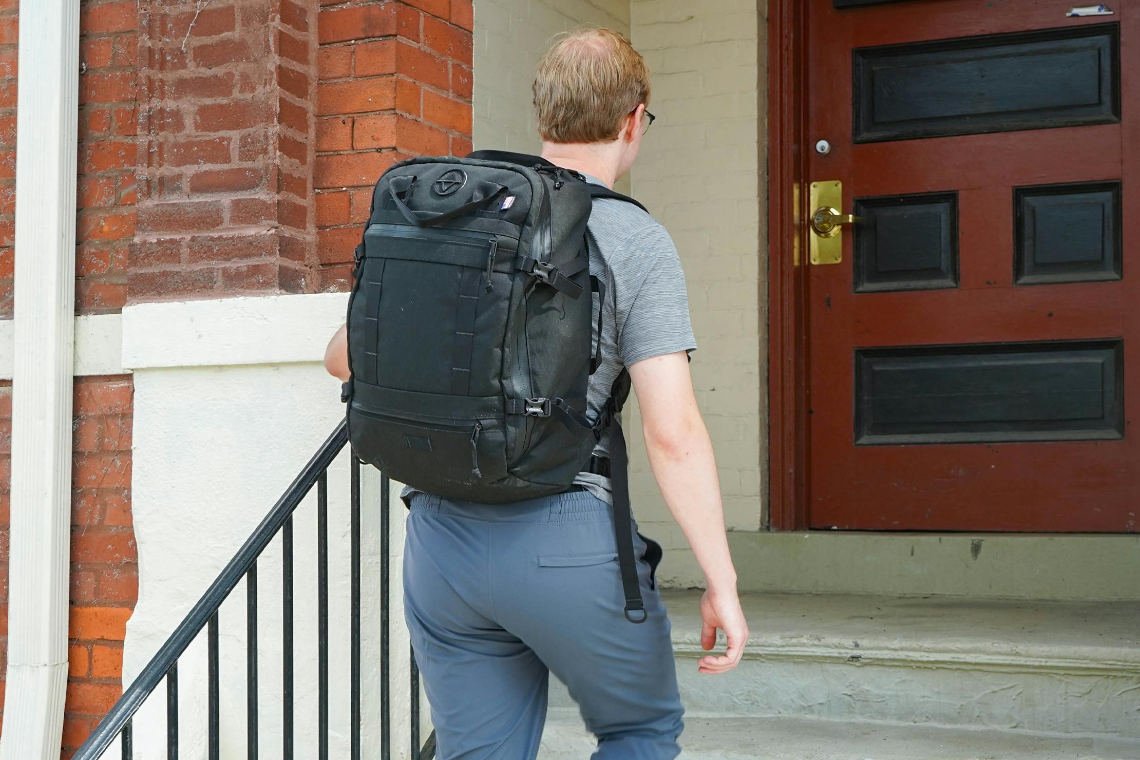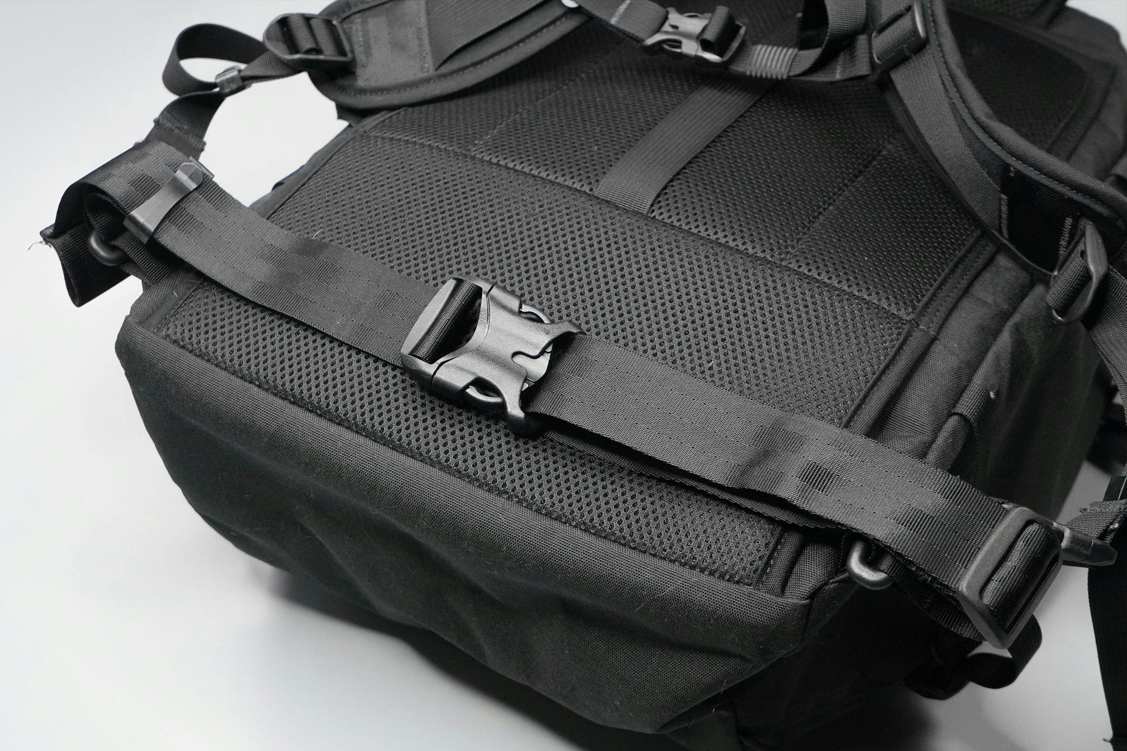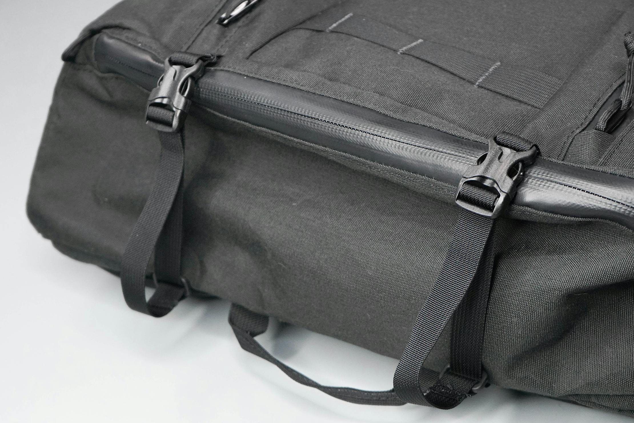 Agora, esta falta de estrutura é conveniente para se/quando você estiver empacotando a mala para uso posterior, já que você pode raspar ou dobrar esta coisa bem plana. Mas quando se tem a mochila nas costas, parece um pouco frouxa, especialmente se a mochila não estiver totalmente arrumada. Se você está procurando uma maneira de remediar isso, descobrimos que manter um laptop no compartimento traseiro ajuda a dar alguma estrutura, e ainda mais se o laptop está em uma caixa protetora, mas como explicamos na revisão do Matador SEG42 Travel Pack, é meio estranho ter seu laptop agindo como um frame sheet (um frame sheet muito caro).