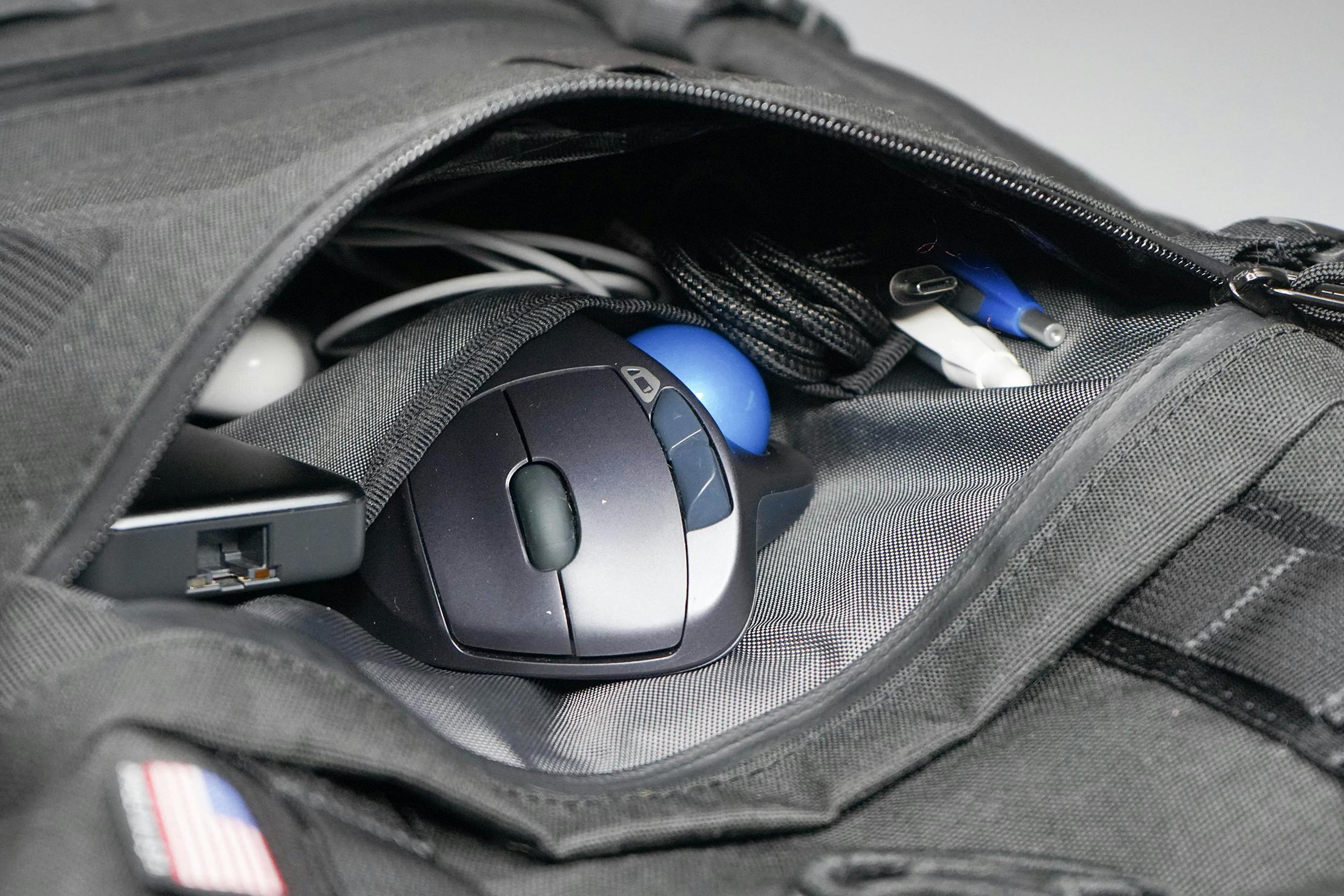 Movendo-se, você tem um bolso de agarrar rápido muito maior. Há duas divisórias aqui. A primeira estica toda a parede traseira e é um local conveniente para um mouse (do tipo computador, duh) ou outros acessórios maiores. O segundo é uma manga menor na lateral para manter uma caneta, lápis, ou estilete à mão. Como este bolso tem um pouco mais de profundidade, temos vindo a usá-lo como uma espécie de carregador de bolso, dongles, outros cabos maiores e acessórios podem caber aqui perfeitamente.